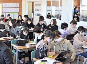 みんなの前で自己紹介をしたり、算数の問題の解き方を発表したり、国語辞典でお家の人といっしょに調べたり、家庭科の裁縫をタブレットの動画や説明を見ながら家の人といっしょに取り組んだり・・・。