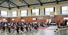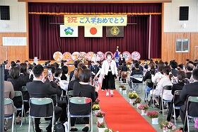 待ちに待った入学式。43名の新1年生がドキドキワクワクしながら、お家の人と入学式に出席しました。