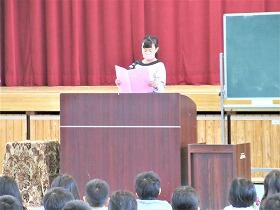 代表の児童が1年のめあてを発表しました。堂々とした発表でした。