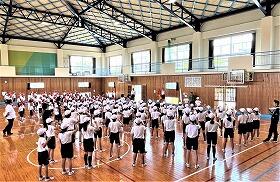 運動会の全体練習(体育館)