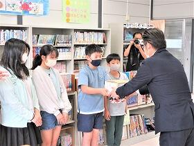 代表で、図書委員会の人が、5月19日の贈呈式に出席しました。