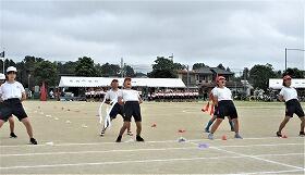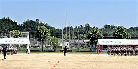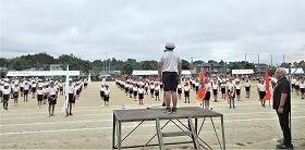 運動会の全体練習(中学校の運動場)