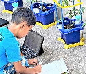 2年生は、生活科で野菜を育てています。自分の植木鉢や花だんで、ミニトマトやナスなどを育てています。