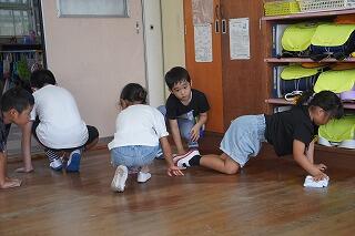 縦割り清掃班で行っています。「おそうじ『だ・い・す・き』」の合い言葉を「めあて」に、一生懸命がんばっていました。すばらしい!