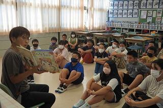 月曜日(4日)は、乙房パフォーマンスグループ(乙房こども園の先生方)さんによる、5年生と6年生への読み聞かせがありました。