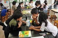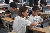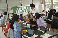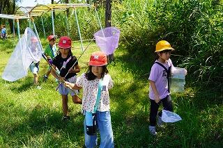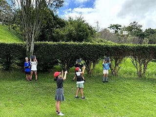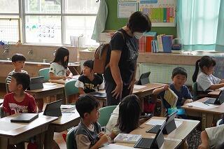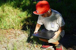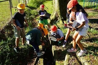 実際に虫あみや虫かごをもって走り回ったり、一方、1人1台端末で写真を撮ったりして活動しています。アナログとデジタルとベストミックスといったところでしょうか。