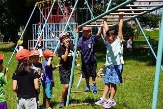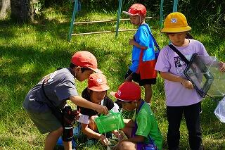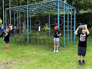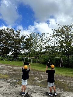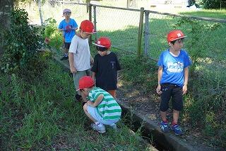 それでも暑いのですが、外で遊びたいという子どもたちもいます。遊具やボールで遊んだり、学校のちょっとした溝で生き物をさがしたりと、それぞれが楽しんでいます。