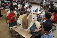 新校舎増改築のため、昨年11月に保護者の皆様のお力をお借りしながら、現在の仮設校舎に引っ越したのですが、現在2年生と5年生が使っている北校舎2階の改築工事が入り、1学期の終わりに、旧保健室(2年生)や仮設校舎の特別教室(5年生)に引っ越しました。