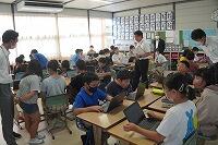 まず、全学年を授業参観をしていただきました。1人1台端末を子どもたちが活用して学習している様子や体育の授業でドッジボールに夢中になっている様子等を参観していただきました。