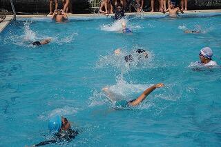 今日15日(金)はプール納会がありました。6月13日(火)に始まったプールでの学習も、途中夏休みでお休みしましたが、本年度は今日で終わりです。