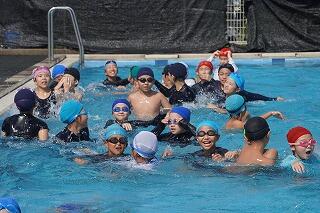 3年生の子どもたちは初めての大プールで、水も深くなり「こわい、こわい」とプールサイドをつかんでいる子もいたのですが、なんと、浮くことはもちろんのこと、クロールができるようになりました。