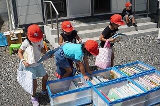 貸出手続きをして帰る子どもたち、「早く読みたいな!」と、うきうきしています。