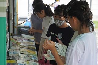 15日(金)は、都城市立図書館の移動図書館車のくれよん号が乙房小にやって来ました。