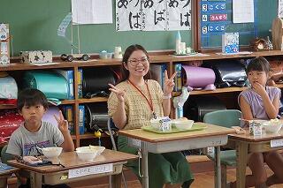 それぞれの国の文化や生活、あいさつ、ジャンケンなどの簡単なゲームについて分かりやすく紹介していただきました。一緒にゲームをしたり、〇×クイズに答えたりと、子どもたちはとても楽しく学習していました。また、給食も2、4、6年に1名ずつ入っていただいて、一緒に楽しく食事をすることができました。