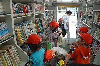 くれよん号は、月に1回、学校にやってきます。子どもたちは、最高8冊本を借りられるので、この日をとても楽しみにしています。