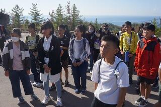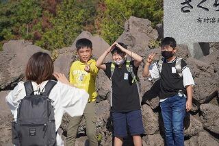 本日の日程は、有村熔岩展望所、いおワールド鹿児島水族館、維新ふるさと館、班別自主研修となっています。