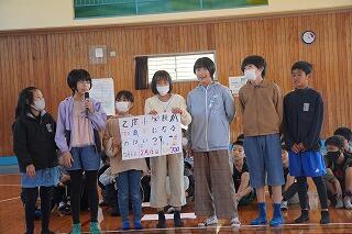 5年生は、12日・13日の宿泊学習での発表をバージョンアップして、全校のみんなに発表しました。学校・学級〇×クイズでは、大いに盛り上がり、みんなを楽しませてくれました。また、「強風オールバック」の曲で替え歌を作っていて、それを発表しました。歌詞がとてもおもしろく、全校のみんなものりのりでした。5年生は宿泊学習を通してさらに元気よくなり、まとまりが出てきたように感じました。