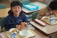 今日27日(火)の給食のメニューは、「きなこ揚げパン 牛乳 ミートボールと豆のトマト煮 アスパラのソテー」でした。この中でも、特に、子どもたちが楽しみにしていたのが「きなこ揚げパン」でした。朝から、「先生、今日、きなこ揚げパンですよ」と教えてくれる子もいました。