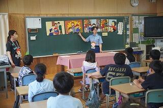 宮崎県警察本部少年サポートセンターでは小学生を対象として、少年補導職員と学級担任が一緒に授業を行うティーム・ティーチングによる非行防止教室を実施しています。