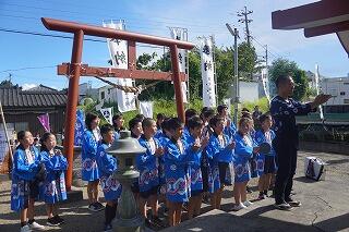 乙房小学校の5・6年生の子どもたちも、「灯ろう」作りや「子ども御輿」、「乙房奴踊り」で参加し、祭りを盛り上げました。