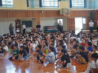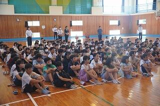 学習部長の先生、生徒指導主事の先生、保健主事の先生から夏休み中に気を付けてほしいことについてお話がありました。子どもたちはしっかり聞いていました。