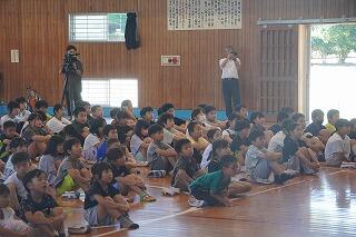 7月25日(木)に、都城市教育委員会の児玉教育長、古田指導主事、石塚指導主事に御来校いただき、乙房小・菓子野小合同の「教育長スクール・ミーティング」が行われました。