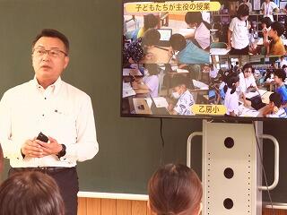 まず、乙房小と菓子野小の研究主任が「子どもたちが主役の授業」の実践発表を行いました。