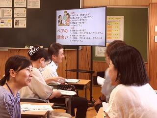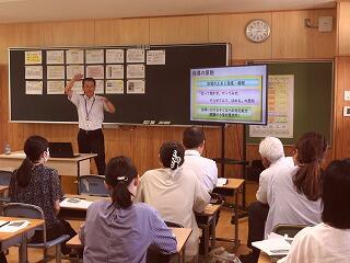 7月29日(月)に東小学校の荒木校長先生に講師としてお越しいただき、乙房小、庄内小、菓子野小、西岳小の4校合同で特別活動の研修を行いました。