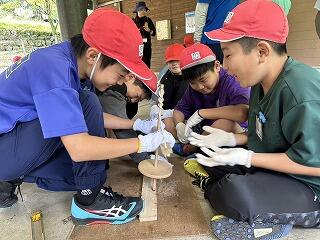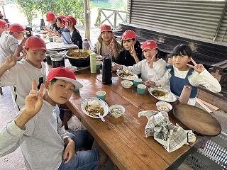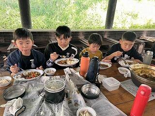 今日は、午前中は「火おこし体験」、「野外炊飯(カレーづくり&ご飯炊き)」、午後は奉仕作業が行われました。子どもたちは元気いっぱいで、楽しく活動できました。充実した1日でした。