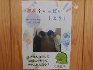 その中で、「あいさつをよくしたい」という意見が出され、「児童会で『あいさつ運動』をしよう」、「あいさつの呼びかけポスターを掲示しよう」ということが決まりました。
