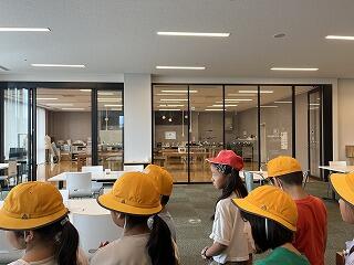 1・2年生は、「都城学校給食センター」と「都城市立図書館Mall mall」に行きました。都城学校給食センターで は、給食センターがどのような仕事をしているかのDVDを見たり、センター内を2階から見学したりしました。給食を作っている様子を実際に見ることができて、とても嬉しそうでした。都城市立図書館では館内見学や説明、事前に学習して疑問に思ったことを質問したりしました。お天気もよく、図書館の近くの公園で、お弁当やおやつを食べたり、遊んだりしました。
