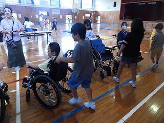 車いす体験では、初めて車いすを押す体験をした子どもたちもたくさんいたようで、戸惑いながらもたくさんの事を学びました。