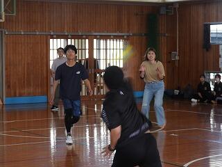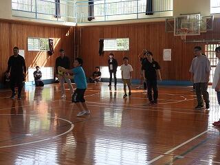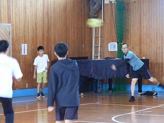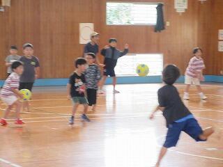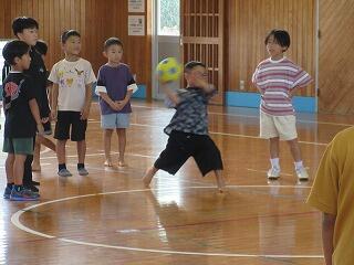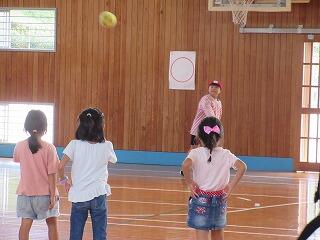 予選の後、見に来ていた子どもたちの ゲームも特別に行いました。1年生から6年生まで混じって行いましたが、さすがに高学年は心得ていて、低学年の子たちにはボールを優しく投げていました。