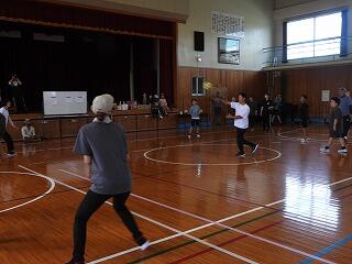 準備運動はしましたが、ドッジボールをするのは数年(数十年?)ぶりという方も多かったです。最初はみんな恐る恐る投げていましたが、そのうちどんどん熱がこもってきました。予選で1勝しただけでも大騒ぎ。とても盛り上がりました。