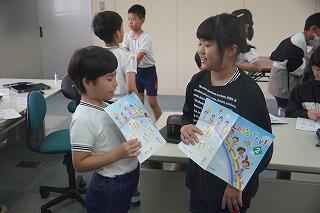 子どもたちは、個人で絵カードを並べて、文房具セットをつくり、「Do you have a ( )?」と、pen, eraser, ruler, marker,・・・と、友達と相互に質問を行いながら交流をしていました。とても楽しそうでした。