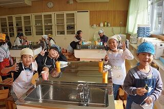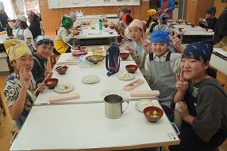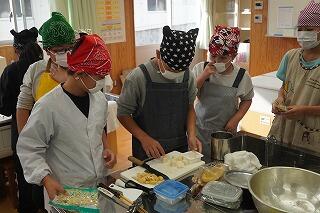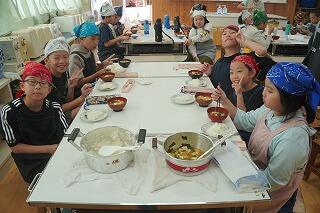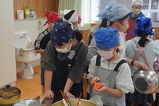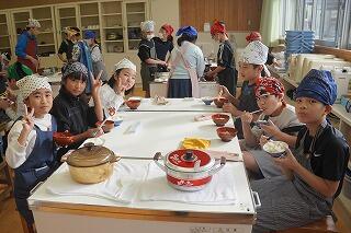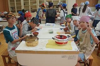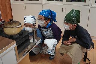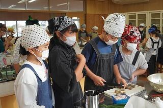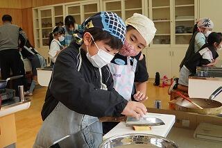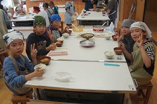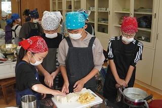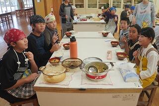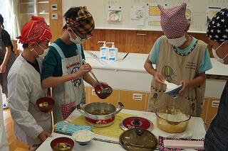 グループで協力して、洗ったり、切ったり、火加減を見たりとご飯たきとみそしる作りに取り組んでいました。