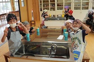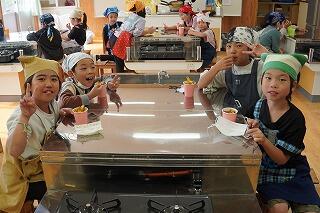 できあがった「スティックさつまいも」は、自然の恵みに感謝し、「おいしいよぉ~!」と話しながら、おいしくいただきました。