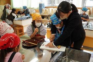 今日の授業は、4年生が参加し、LOVEらぼキッチンの江夏敬子様が講師を務めてくださいました。南九州大学の先生と学生さんもサポートに入ってくださいました。