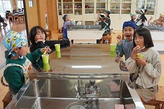 18日(月)は、甘みや酸味、うまみなど5つの味覚を体験して、五感を使って味わうことの大切さや楽しさを学んだり、食についての興味関心をもってもらったりすることを目的とした「味覚の授業」がありました。