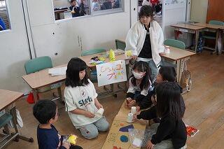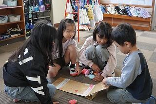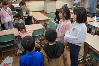 1年生にわかりやすいようにおもちゃの遊び方の説明をしたり、やり方が分からない1年生にはやって見せたり、一緒に遊んだり、遊んでくれた1年生に手作りの景品をプレゼントしたり、応援や大きな拍手をしたりして盛り上げたりするなど、1年生を楽しませようとする工夫がいっぱいでした。この日に向けて、とてもがんばってきた2年生です。とても素敵でした。