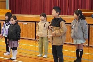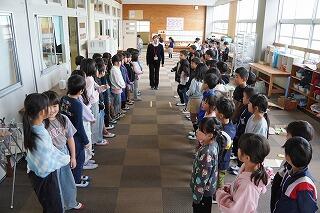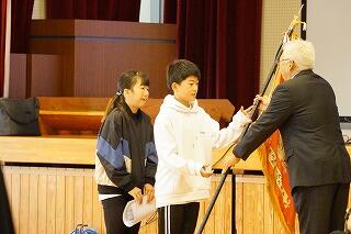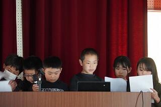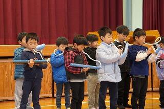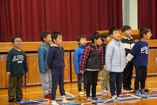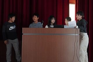 2学期を振り返って心に残ったことを発表しました。一つ目は、菓子野小、庄内小との合同宿泊学習。カレー作り、追跡ハイキングなど、初めての人たちと協力しながら学校では体験できない貴重な学びがあったこと。「規律・協同・友愛・奉仕」について活動を通して学ぶことができたこと。学習では、分数や公倍数、画数の多い漢字、教科書の文章量が多くなったことなど、学ぶことの量も増えて、難しさも増して苦労したけれど、楽しく学ぶことができたこと、3学期は6年生へのゼロ学期として、小学校のみんなを引っ張っていけるようにしっかり準備していくことなどについて発表しました。