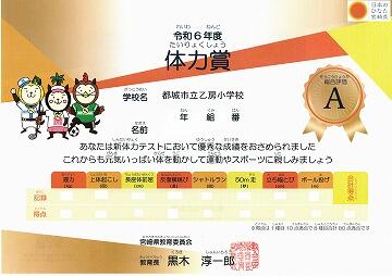 今回、本校では、以下の子どもたちが体力賞を受賞しました。おめでとうございます。