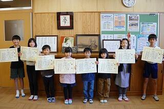 令和7年2月15日(土)に開通予定の「都城志布志道路」都城IC~乙房IC間の橋に架かる乙房小学校区にある橋(3橋)の橋銘板をつくる際に、橋の名前を本校の6年生の子どもたちが毛筆で書きました。