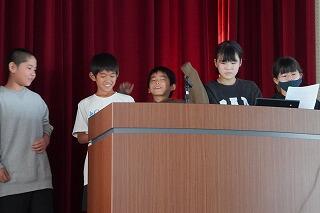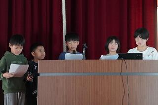 3年生と5年生の児童2名が「2学期に頑張ったこと」や「2学期に心に残ったこと」を作文発表しました。すばらしい発表でした。