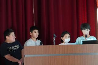 今回の学年・校内予選会の主な目的は、子どもたち一人一人が「表現力や情報活用能力を高めること」「友達のよさを学ぶこと」です。子どもたちは、これまでの総合的な学習の時間で、発表原稿やスライドを作成したり、発表をしたりすることを通して、自分たちの思いや考えを伝える方法を学んだり、「人に伝える」ことの難しさに気付いたりできたのではないかと思います。