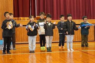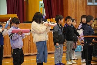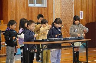1年生は、「ひなたの真ん中で」(歌)と「いちねんせいの うた」(音読)、「きらきらぼし」(合奏)を発表しました。