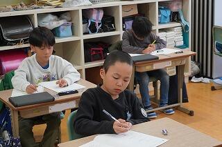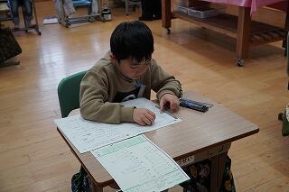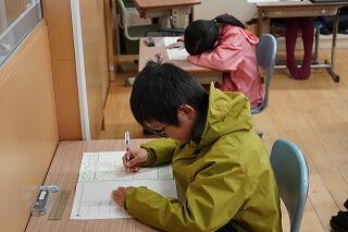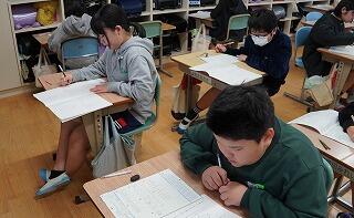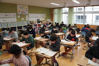 いつもは、元気な声が聞こえてくる教室からは、鉛筆を動かす音とテスト用紙をめくる音が聞こえていました。集中して取り組んでいました。
