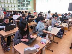 4年生がタブレットを使いながら、国語で学習しているオリジナルの詩を作っていました。