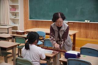 本校には学校のクラブ部活動にも伝承芸能クラブがあり、そこで三味線や太鼓、唄の練習をしています。それに引き続き放課後、希望者を募って、伝承研究会を行っています。この伝承活動を支えるために、毎回、三味線の先生方が講師に来てくださっています。本当にありがたいことです。