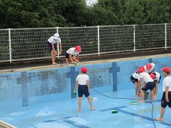2回目は6年生が、壁に残った藻をブラシでこすり落とし、最後の仕上げをしてくれました。